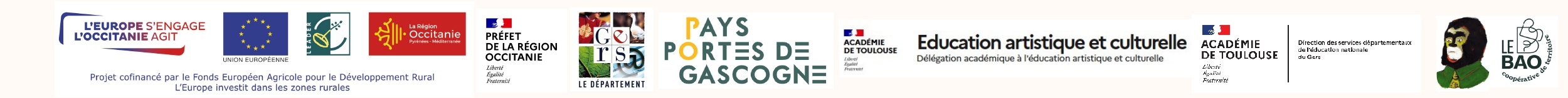 Ce projet bénéficie du soutien du fond européen Leader du Pays Porte de Gascogne, de la DRAC Occitanie, de la région Occitanie, du Département du Gers, du Pays Porte de Gascogne et de la DAAC via la DSDEN 32. En partenariat avec Le Bouche à Oreille et l'ADDA 32.